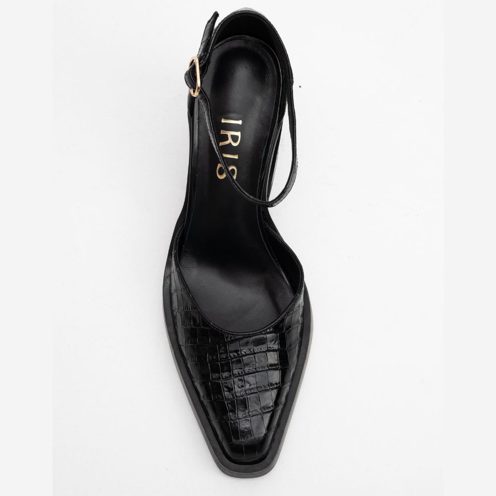γόβες μαύρο croco δέρμα στυλ western/cowboy