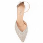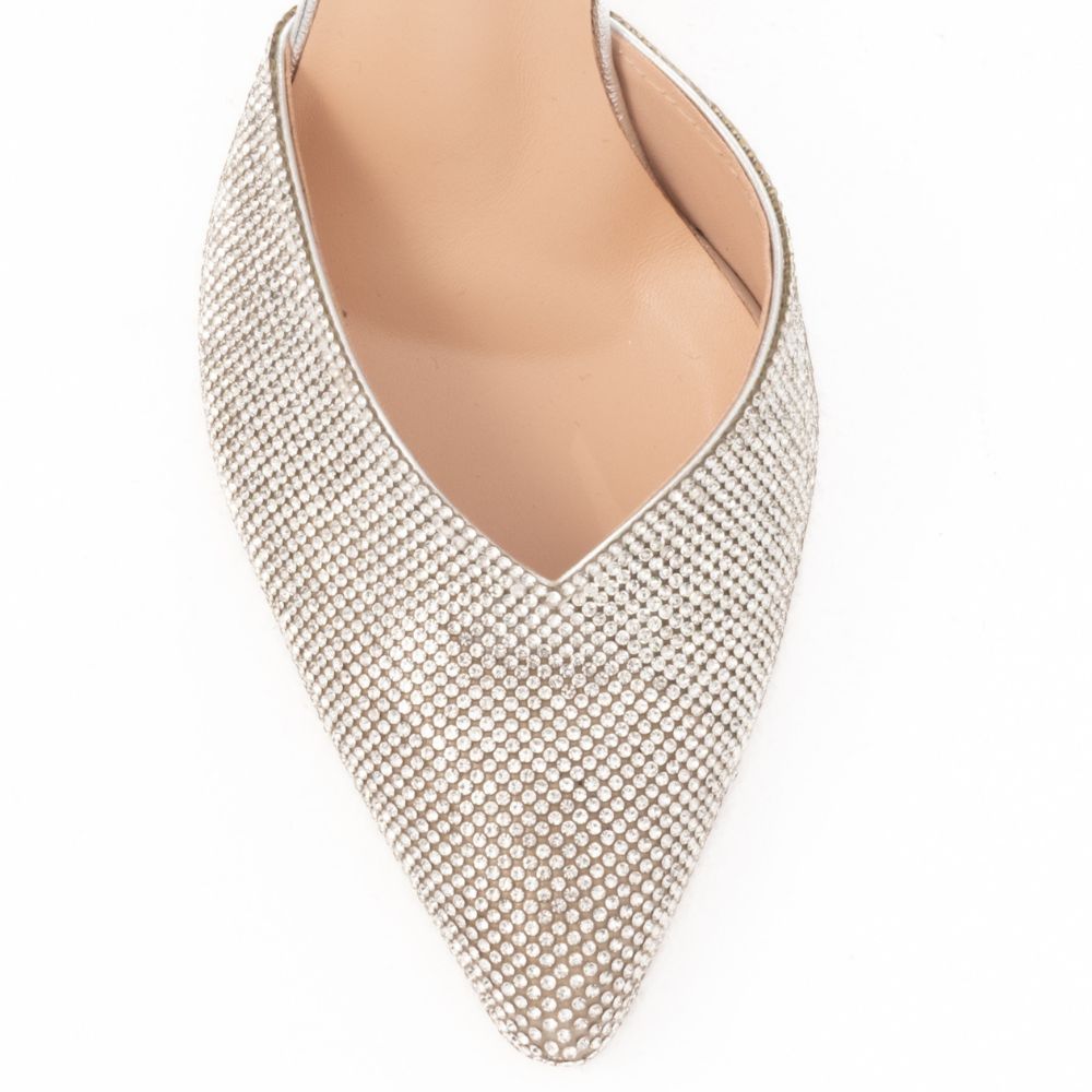 γόβες δερμάτινες ασημί στρας και ψηλό τακούνι 7,50 εκ.