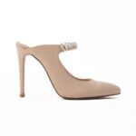γόβες beige mules δέρμα με στρας και ψηλό τακούνι