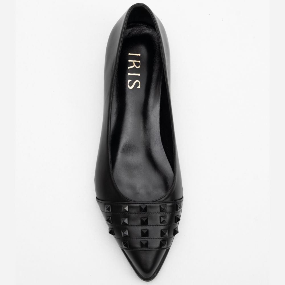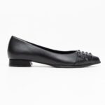 μαύρες δερμάτινες φλατ γόβες με διακοσμητικά