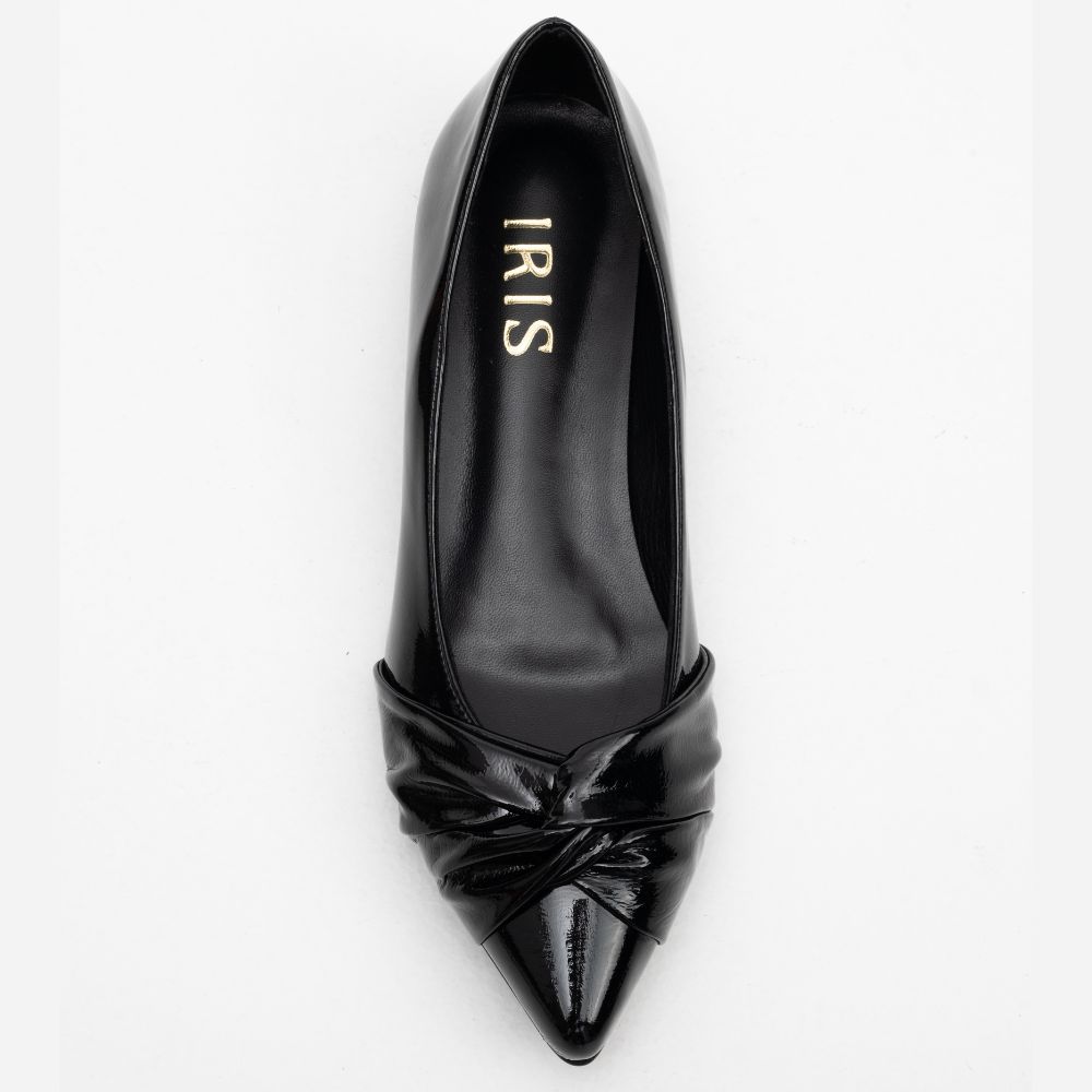 μαύρες γόβες φλατ λουστρίνι με φιόγκο