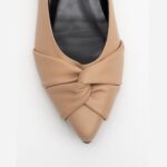 nude γόβες φλατ με φιόγκο και χαμηλό τακούνι