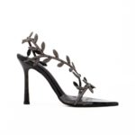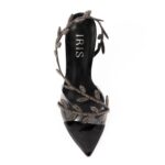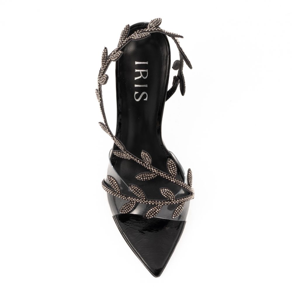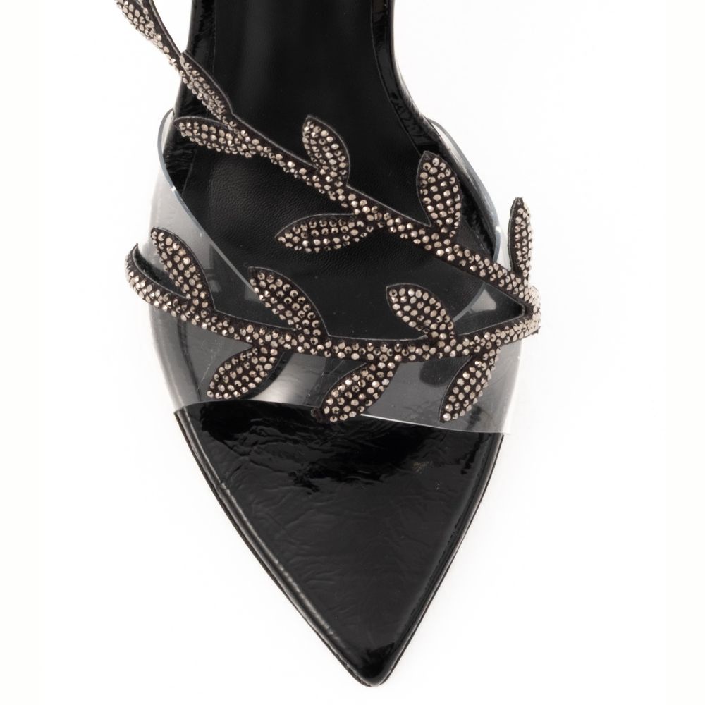 πέδιλα μαύρα δερμάτινα με λουράκια σε σχέδιο κλαδιού και στρας