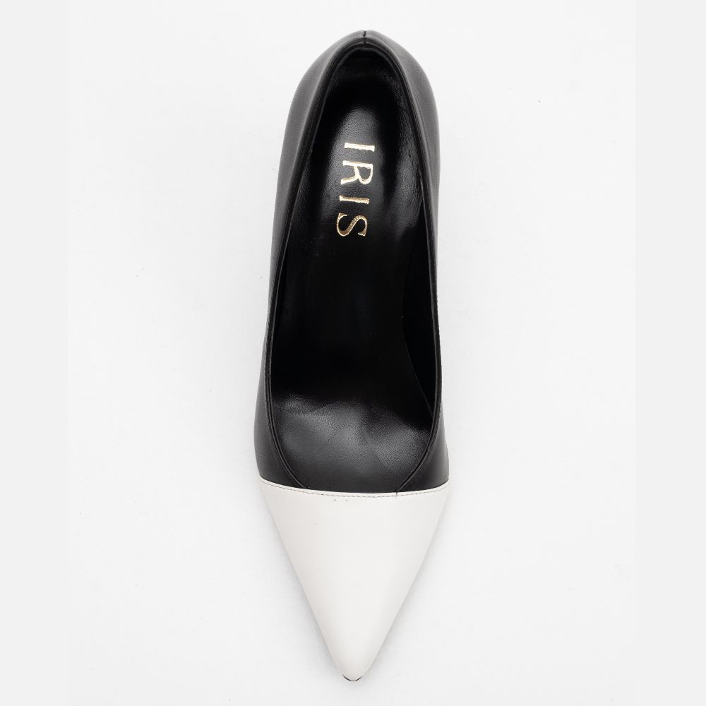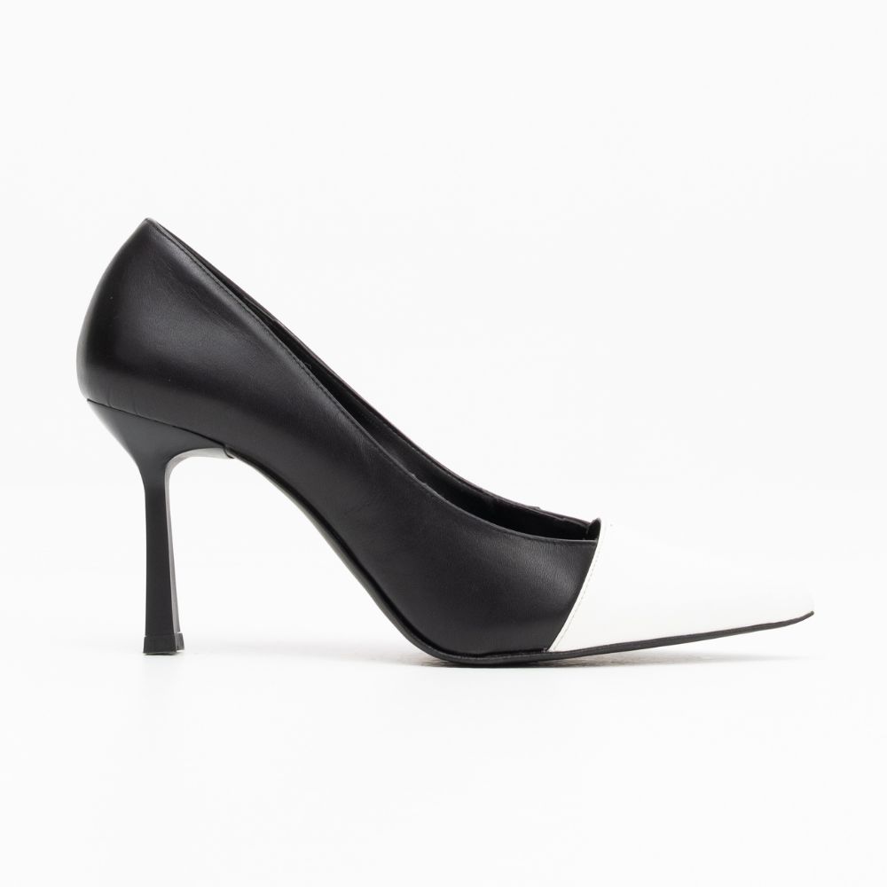 γόβες μαύρο/λευκό δερμάτινες με ψηλό τακούνι