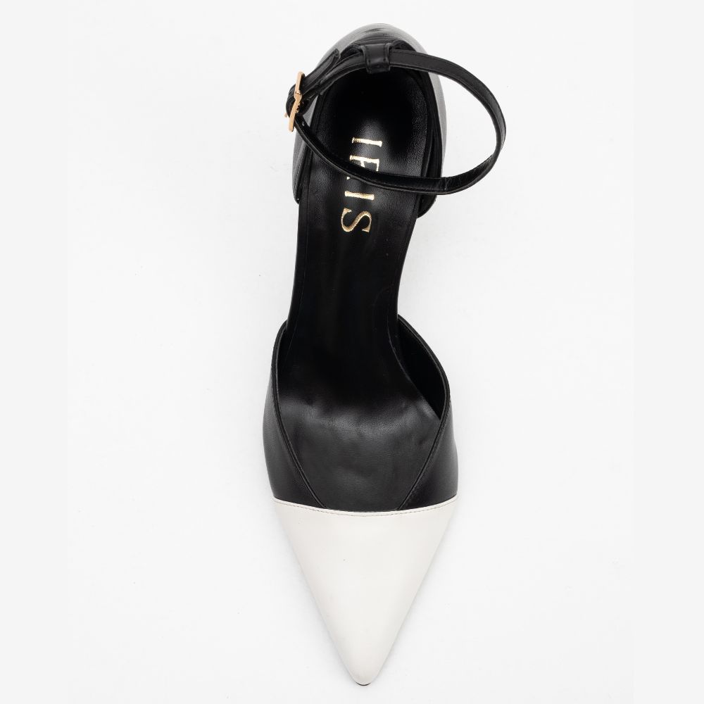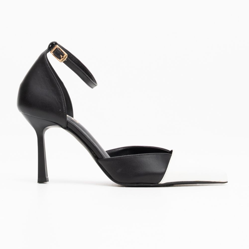 γόβες μαύρο/λευκό δερμάτινες με ψηλό τακούνι