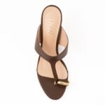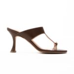 Thong mules δερμάτινα με ιδιαίτερο τακούνι καφέ