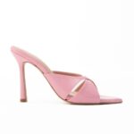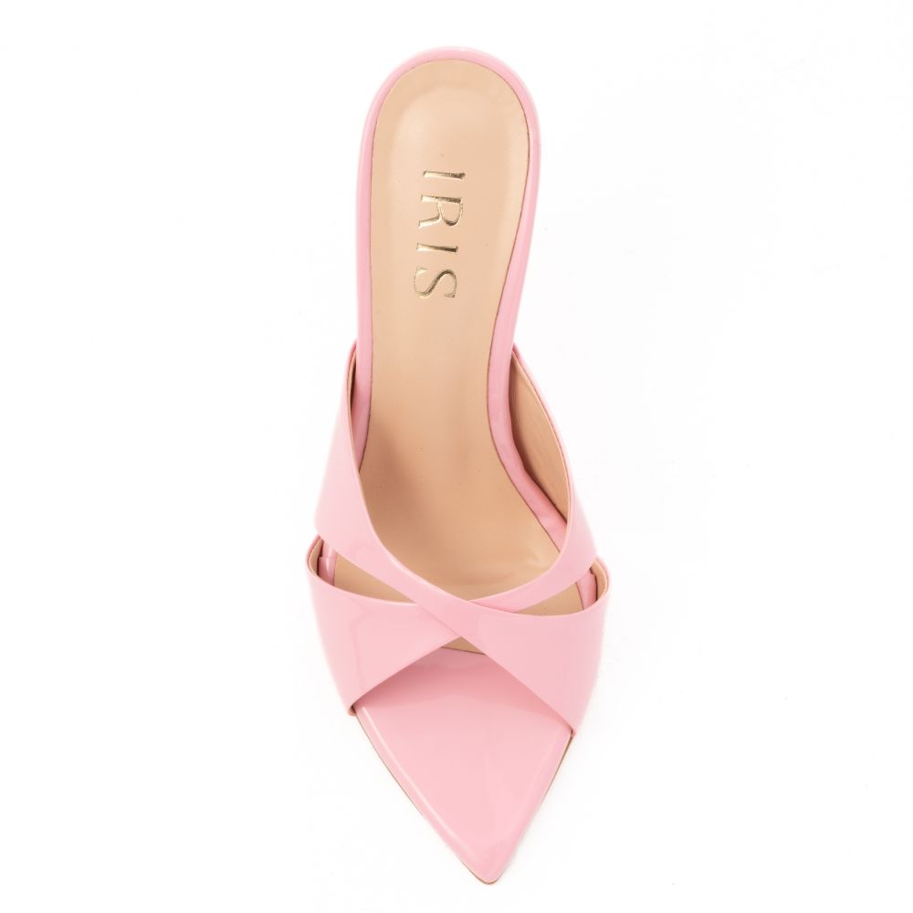 Pointed Criss-Cross mules λουστρίνι με ψηλό τακούνι ροζ