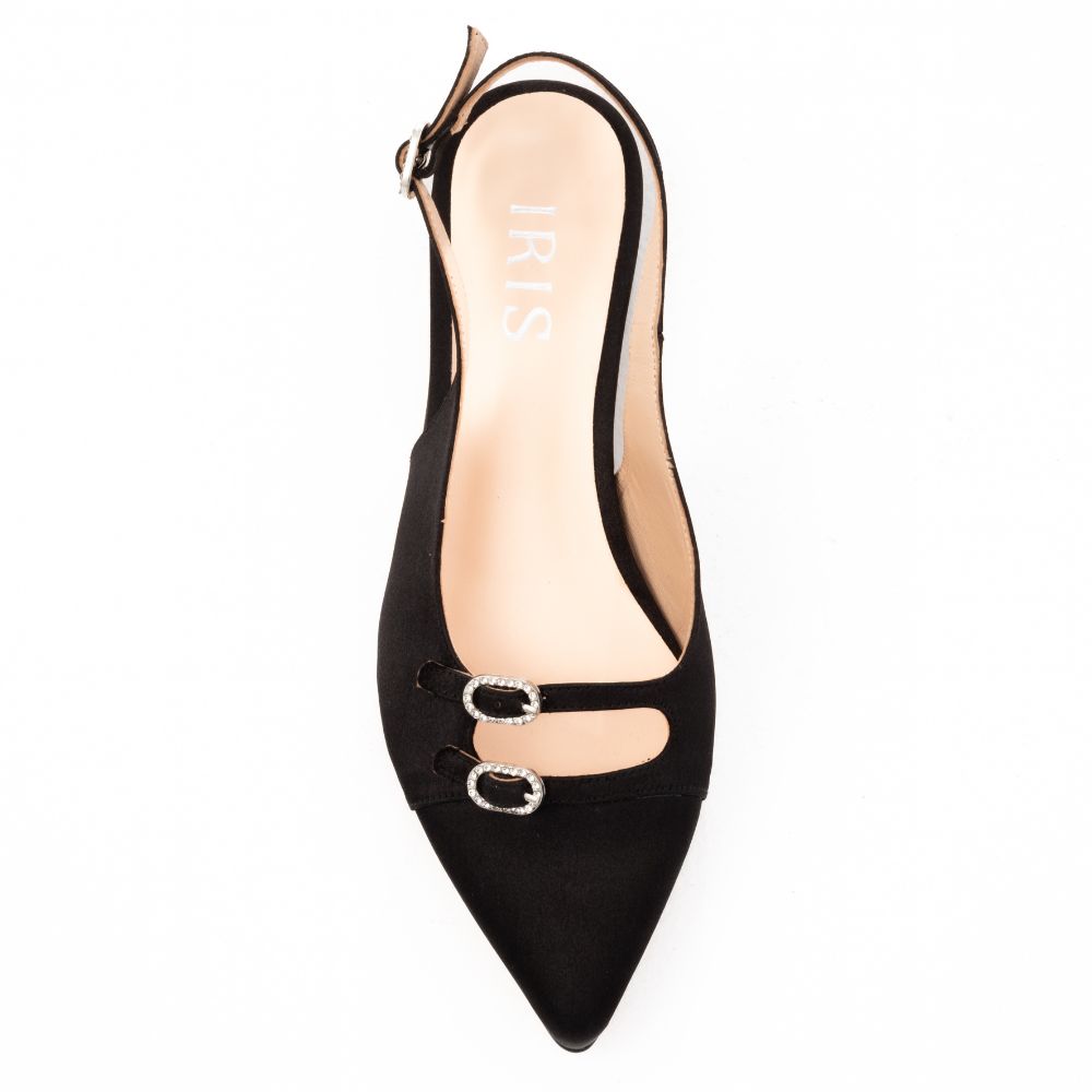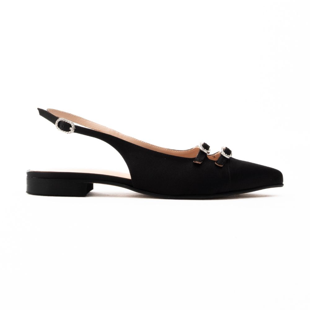 γόβες μαύρο σατέν sling bang φλατ, μυτερές