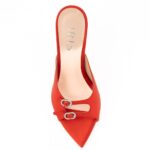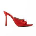 mules ψηλό τακούνι σατέν με στρας κόκκινο