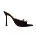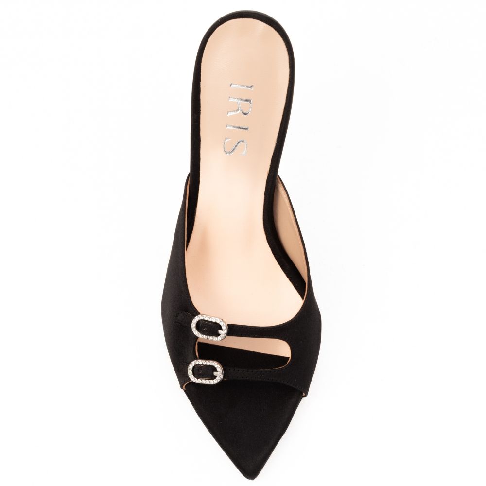 mules ψηλό τακούνι σατέν με στρας μαύρο