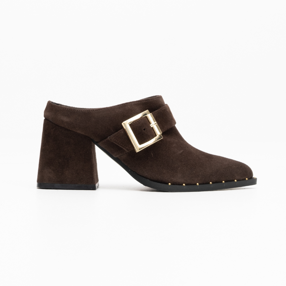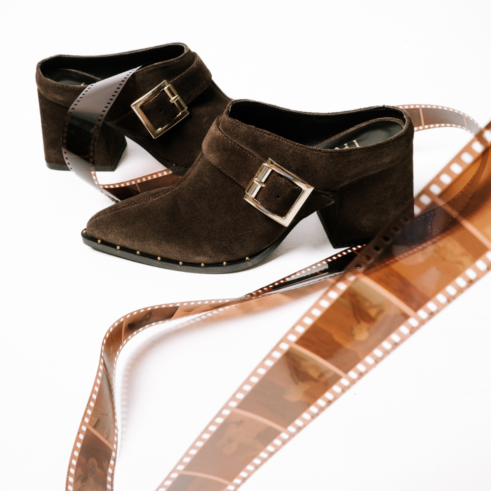 Mules δερμάτινα WESTERN style με μπαρέτα. Μαλακός πάτος, σόλα με διακοσμητικά μπουλάκια και χοντρό σταθερό τακούνι. Ένα σχέδιο για όλες τις εποχές και δυναμικές casual εμφανίσεις.