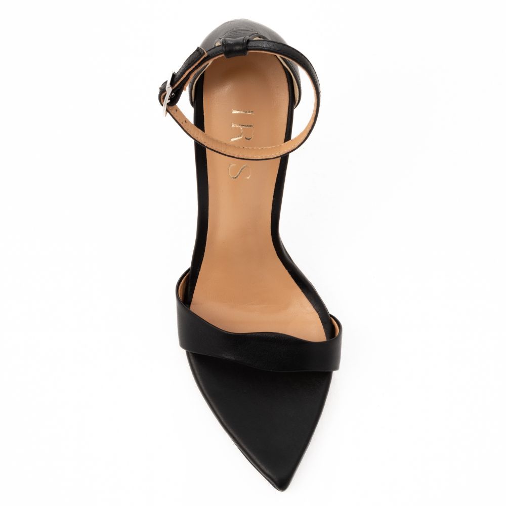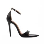 Πέδιλα δερμάτινα και ψηλό τακούνι stilleto μαύρο