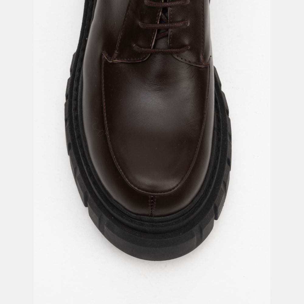 Μποτάκια σκαρπίνια δερμάτινα δετά με chunky σόλα. Άνετη στρογγυλή γραμμή κι εφαρμογή, πάτος μαλακός. Ένα σχέδιο άνετο για το γραφείο και τη βόλτα.