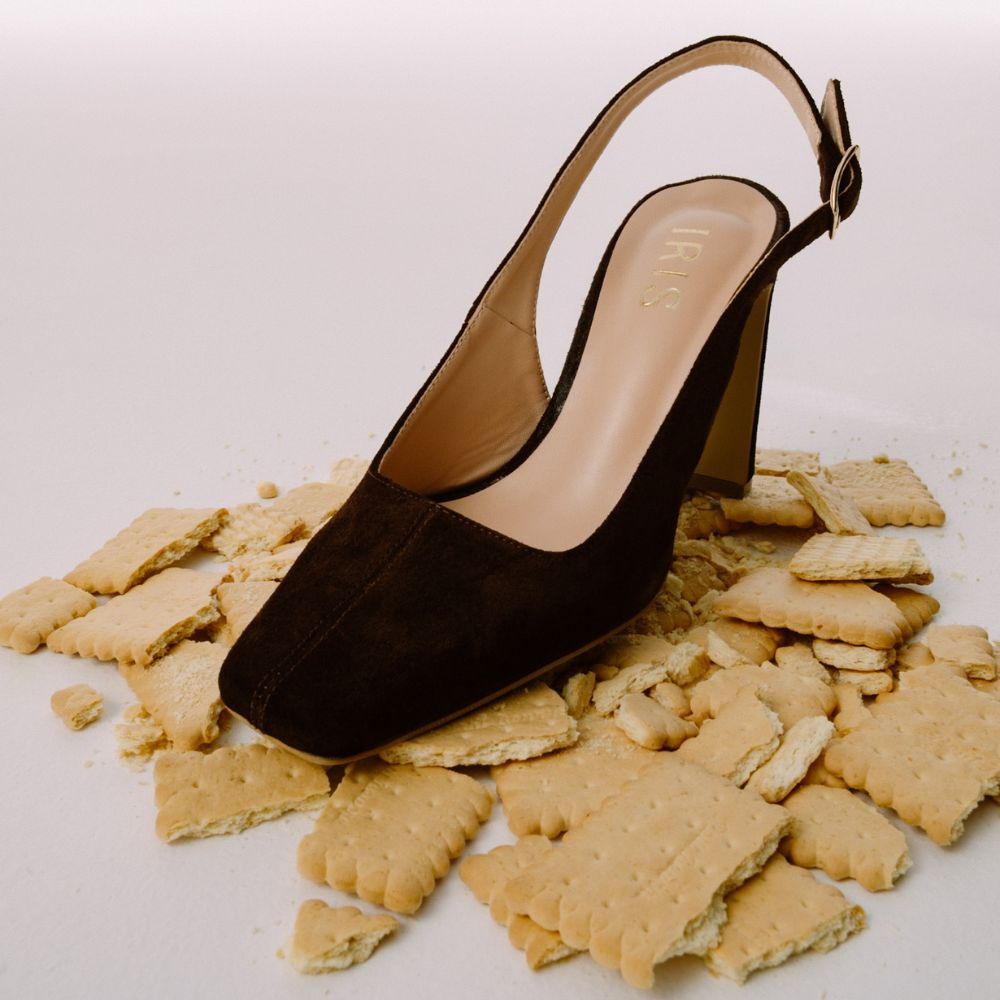 γόβες slingbang chocolate καστόρι καρέ με ψηλό τακούνι
