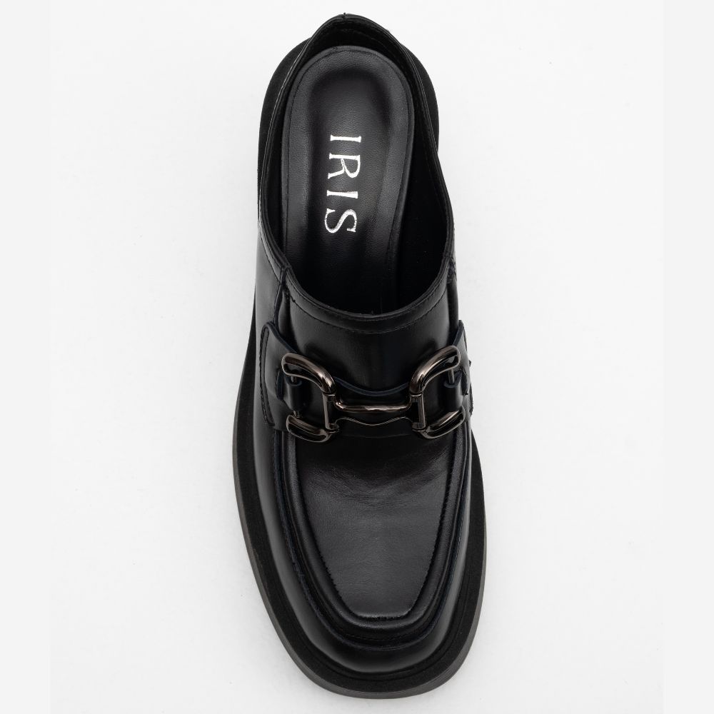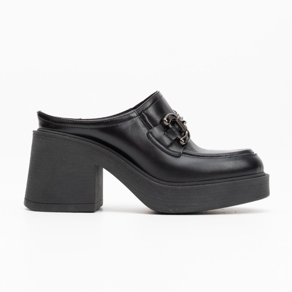 mules σαμπό μαύρο δέρμα με ψηλό χοντρό τακούνι