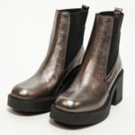 ατσαλί δερμάτινα μποτάκια με χοντρο ψηλό τακούνι