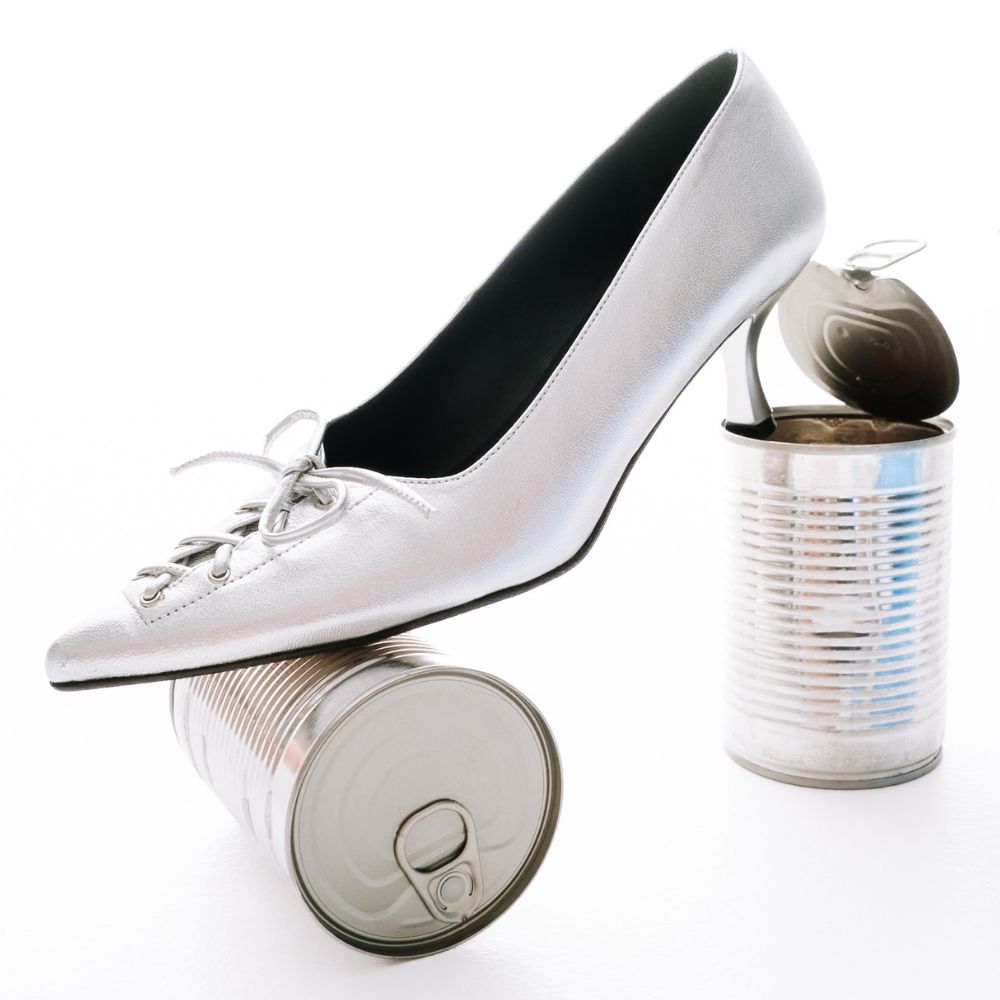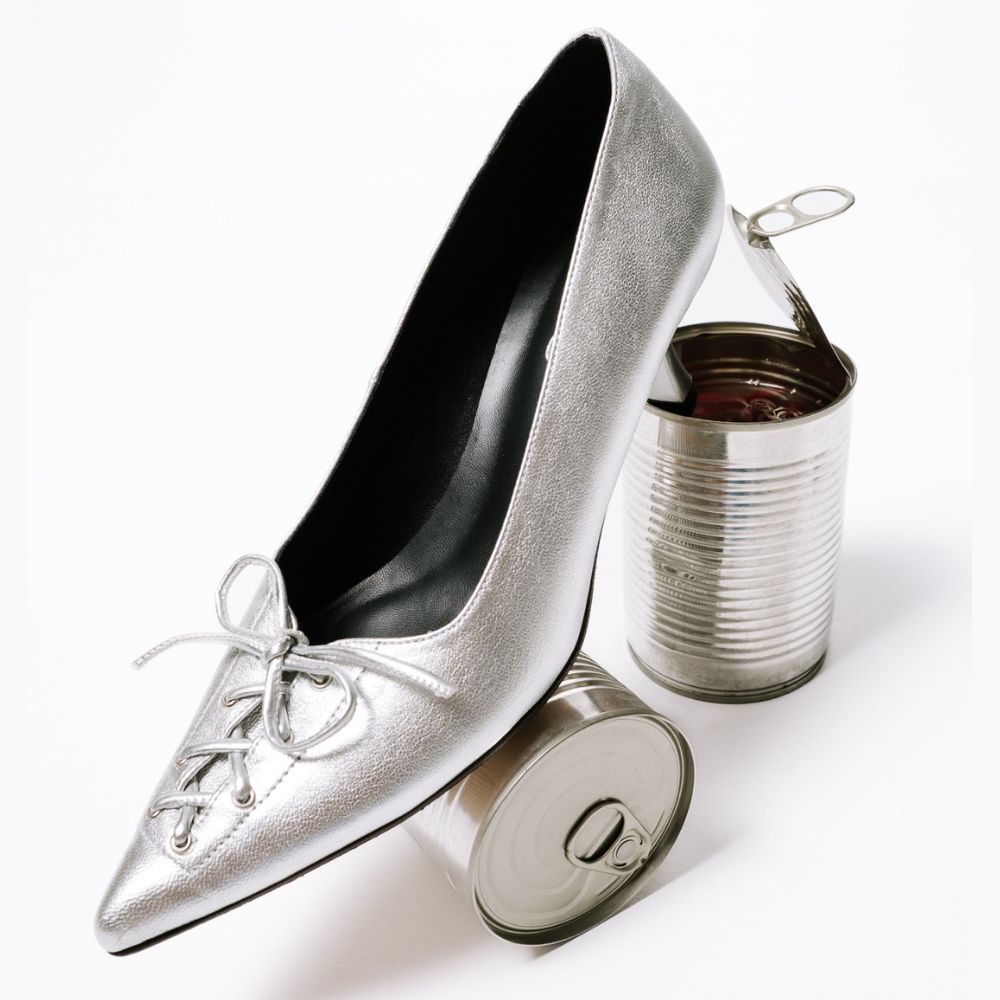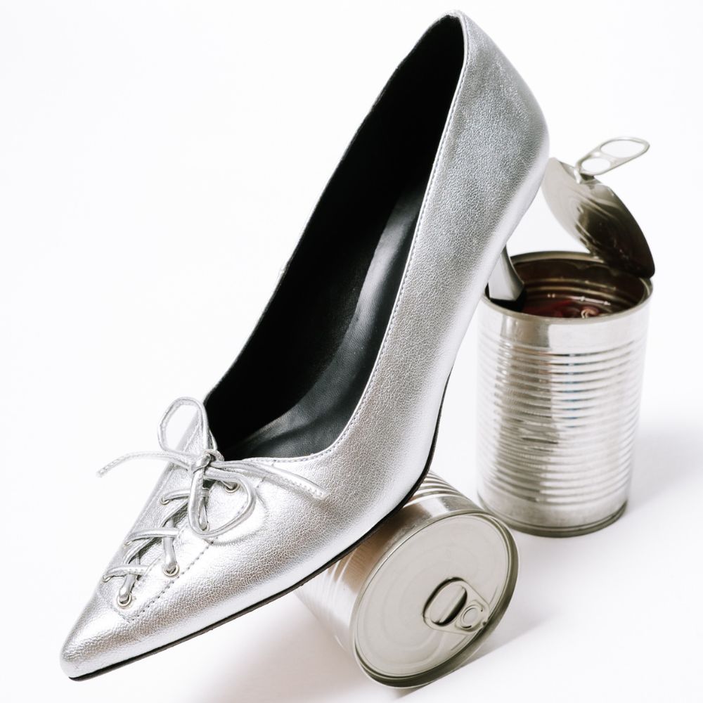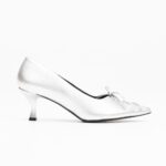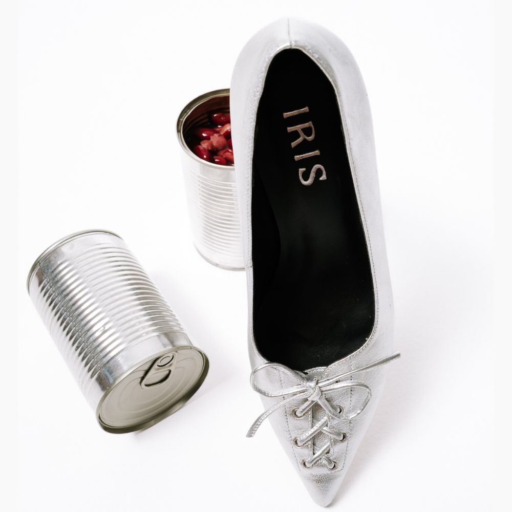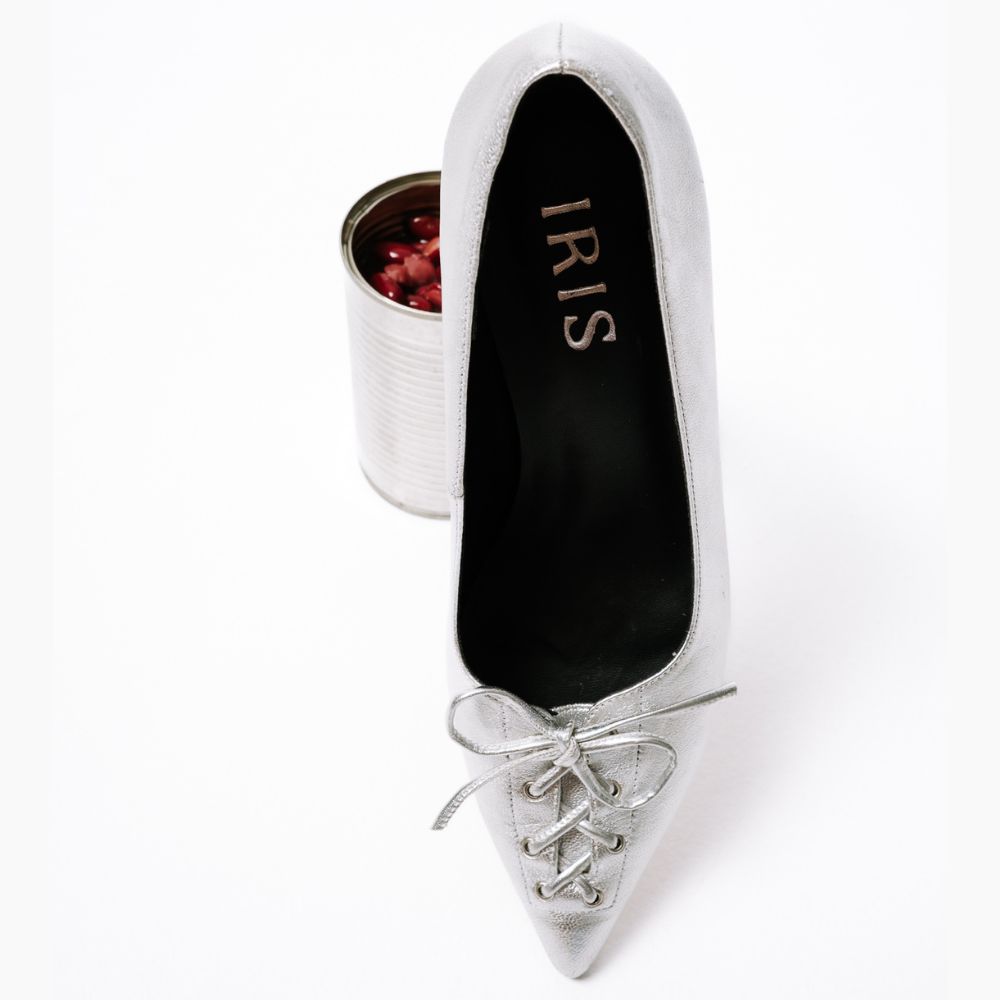 γόβες ασημί δέρμα με διακοσμητικό κορδόνι
