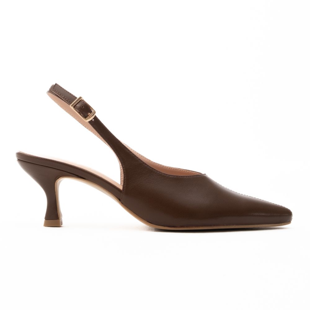γόβες slingback καφέ δερμάτινες με μεσαίο τακούνι
