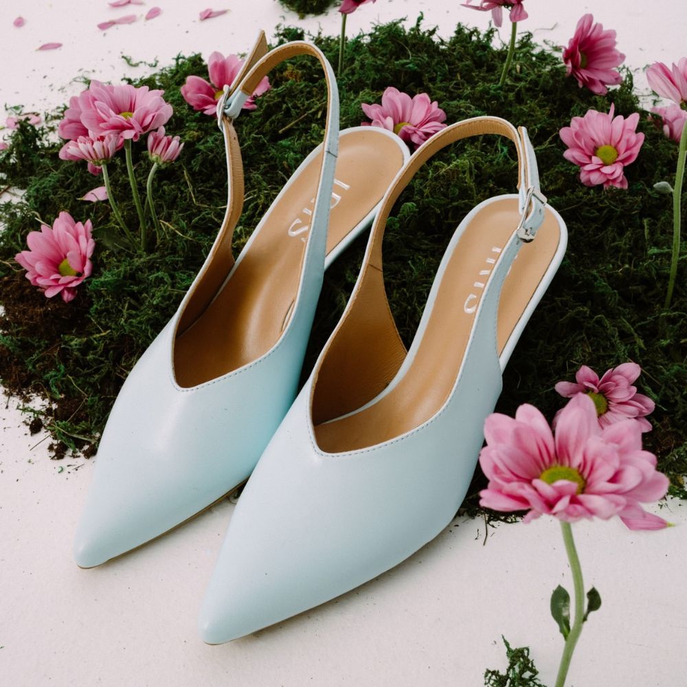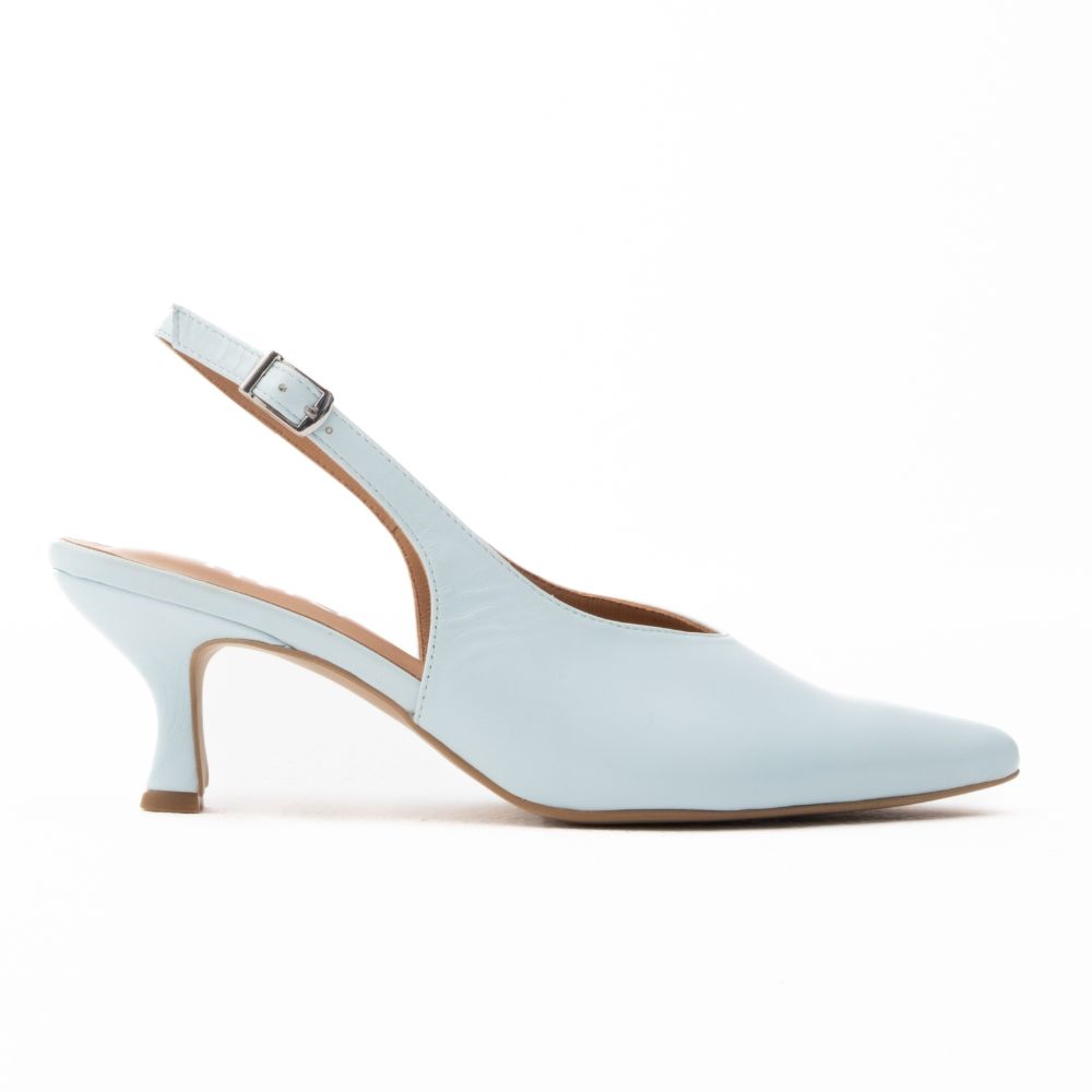 γόβες slingback light blue δερμάτινες με μεσαίο τακούνι