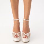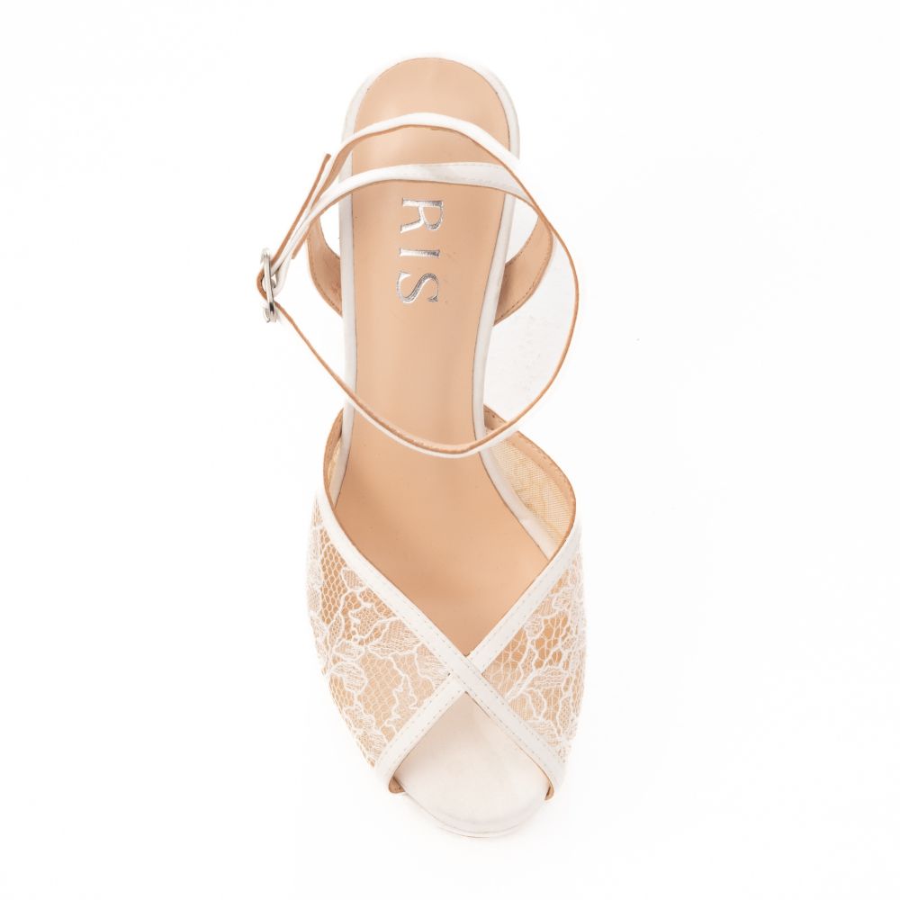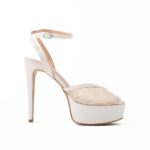 πέδιλα platform λευκό δαντέλα και σατέν με τακούνι stilleto