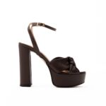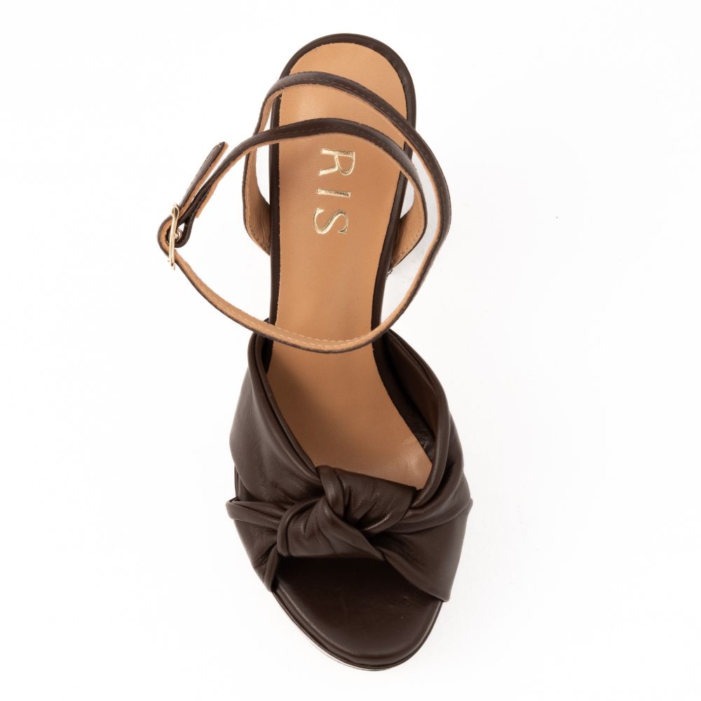 πέδιλα platform καφέ δερμάτινα με χοντρό τακούνι
