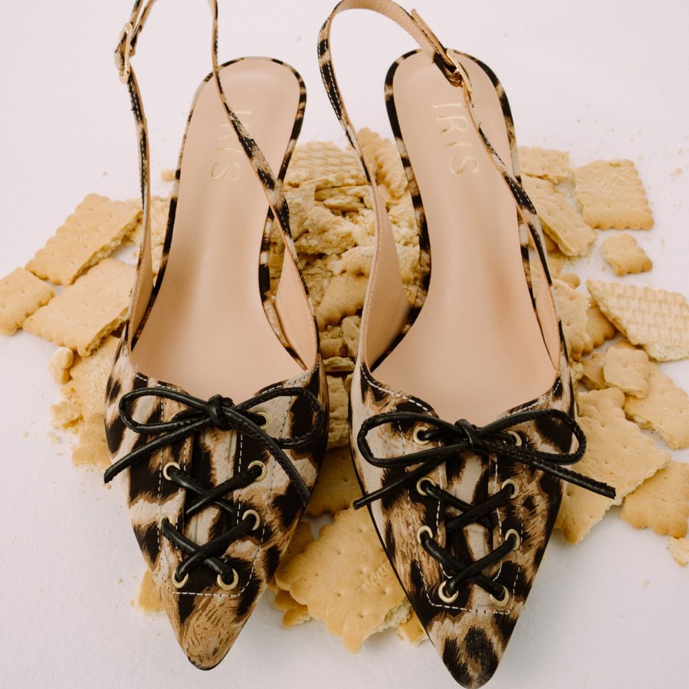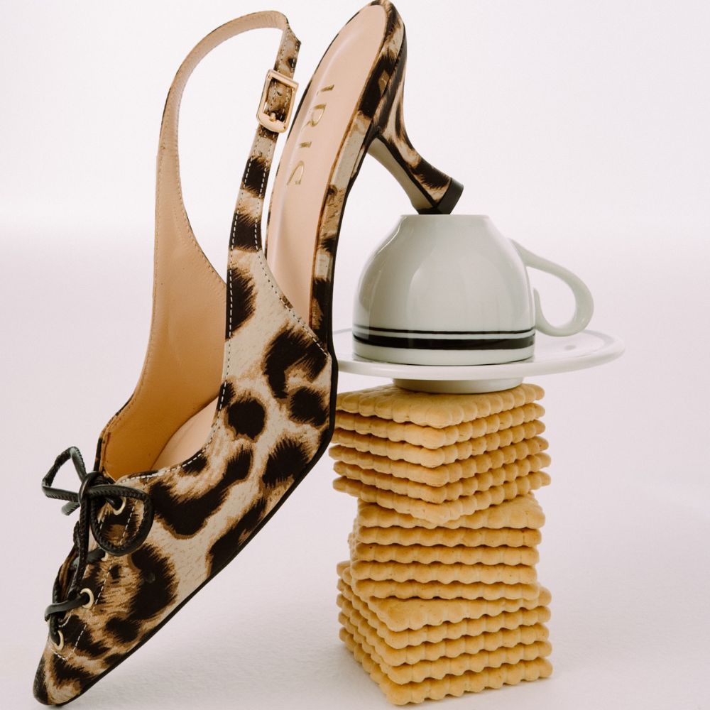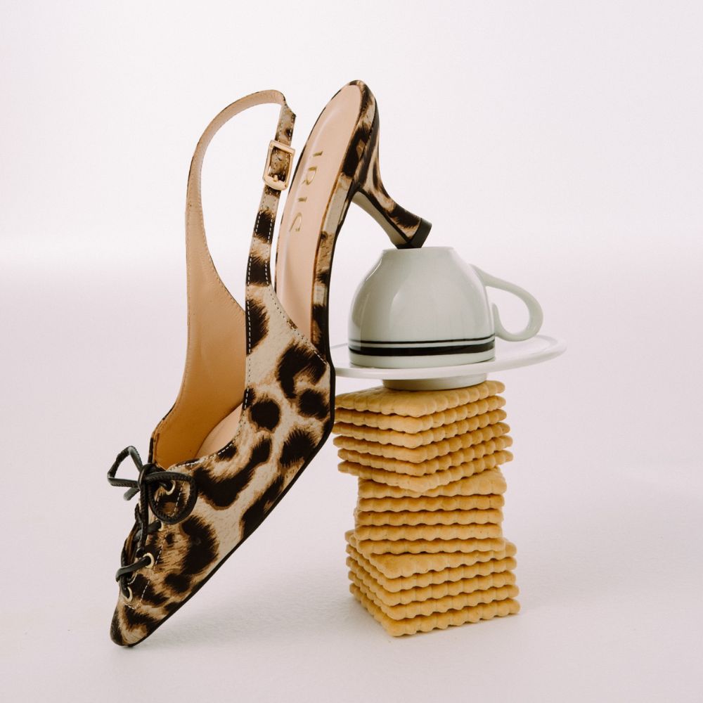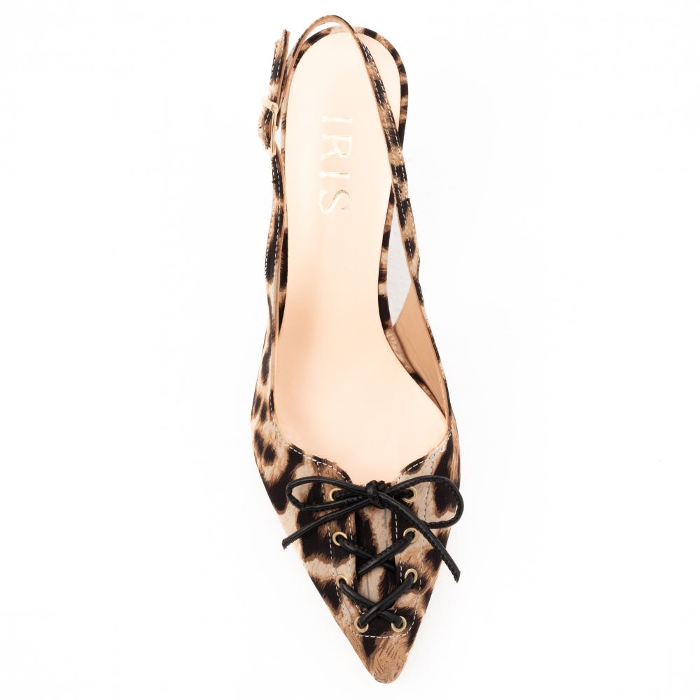 γόβες λεοπάρ σατέν slingback με διακοσμητικό δέσιμο