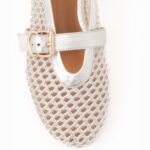 Μπαλαρίνες με μεταλλιζέ δίχτυ και μπαρέτα με αυξομείωση. Μαλακός πάτος, με ίσιο σολάκι κι όμορφη διακόσμηση. Ένα όμορφο κομψό σχέδιο, ευκολοφόρετο για όλες τις ώρες.