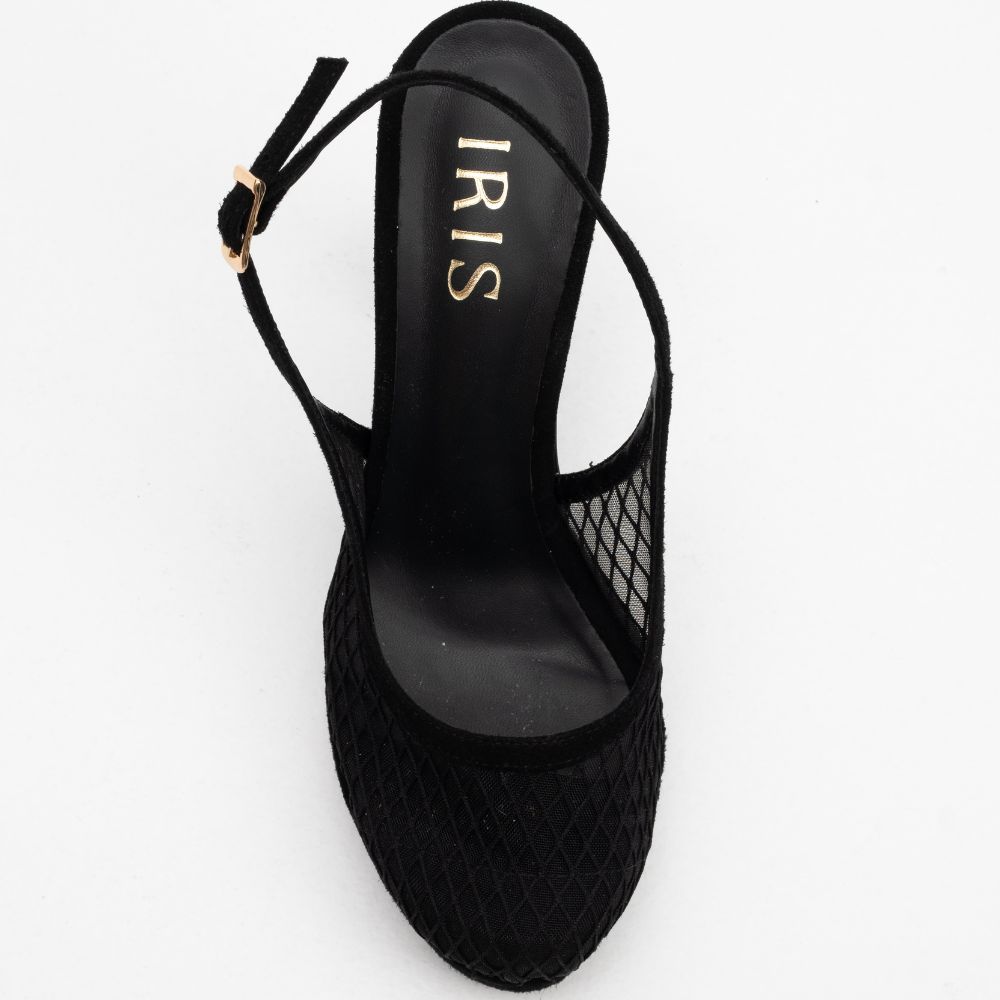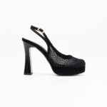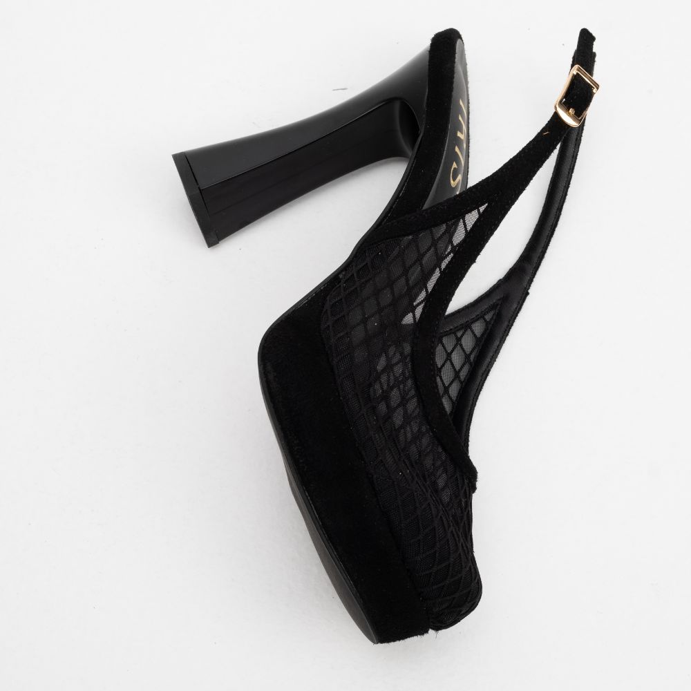 Slingbacks γόβες δίχτυ με φιάπα και ψηλό χοντρό τακούνι. Ιδιαίτερη γόβα με μαλακό δερμάτινο πάτο και σταθερό τακούνι.