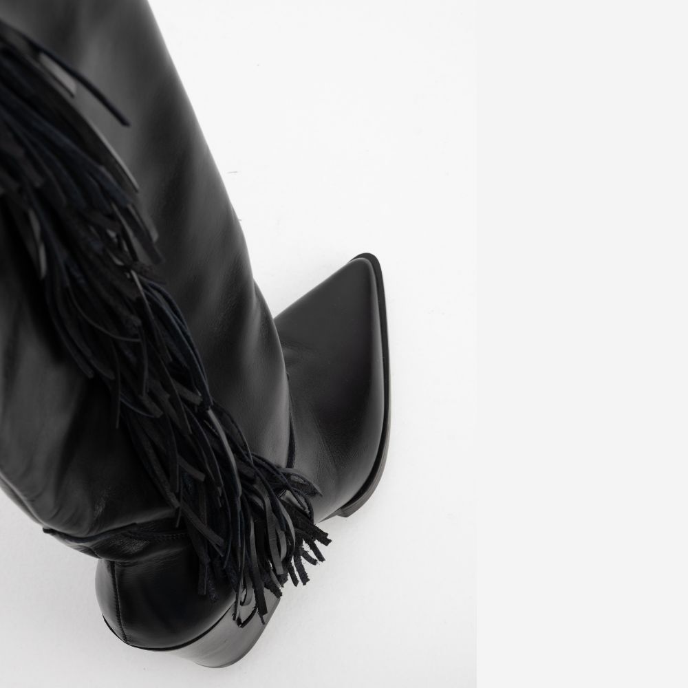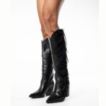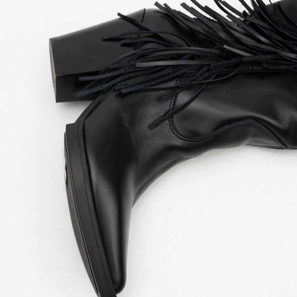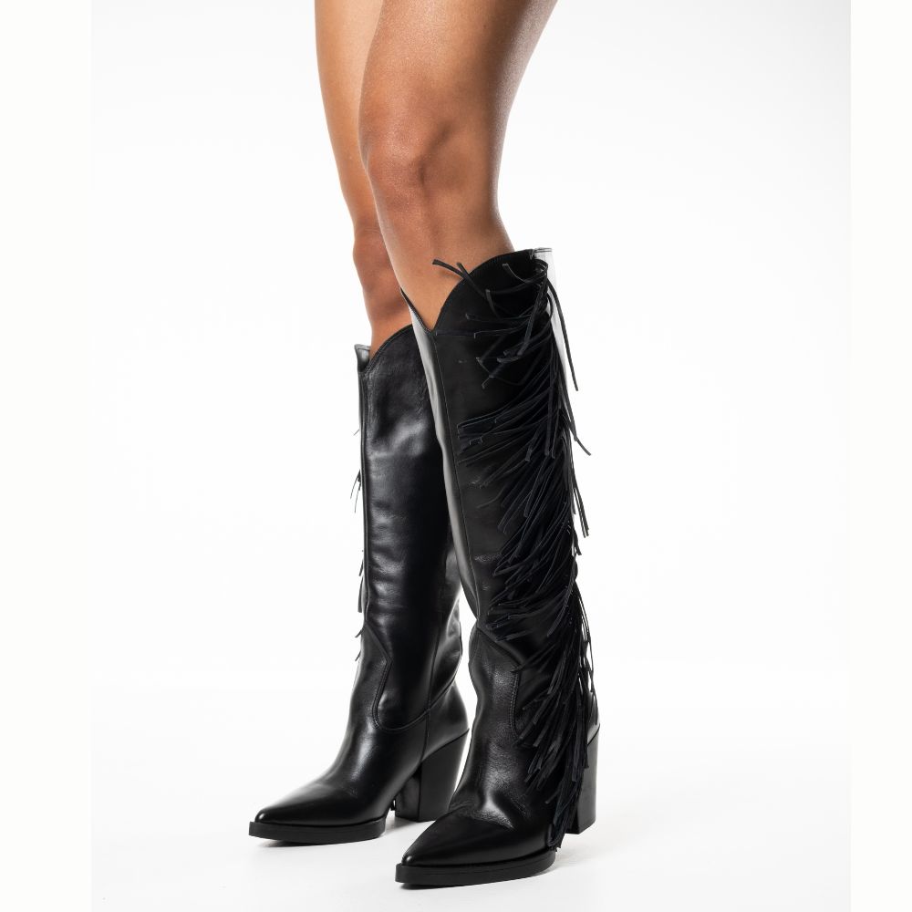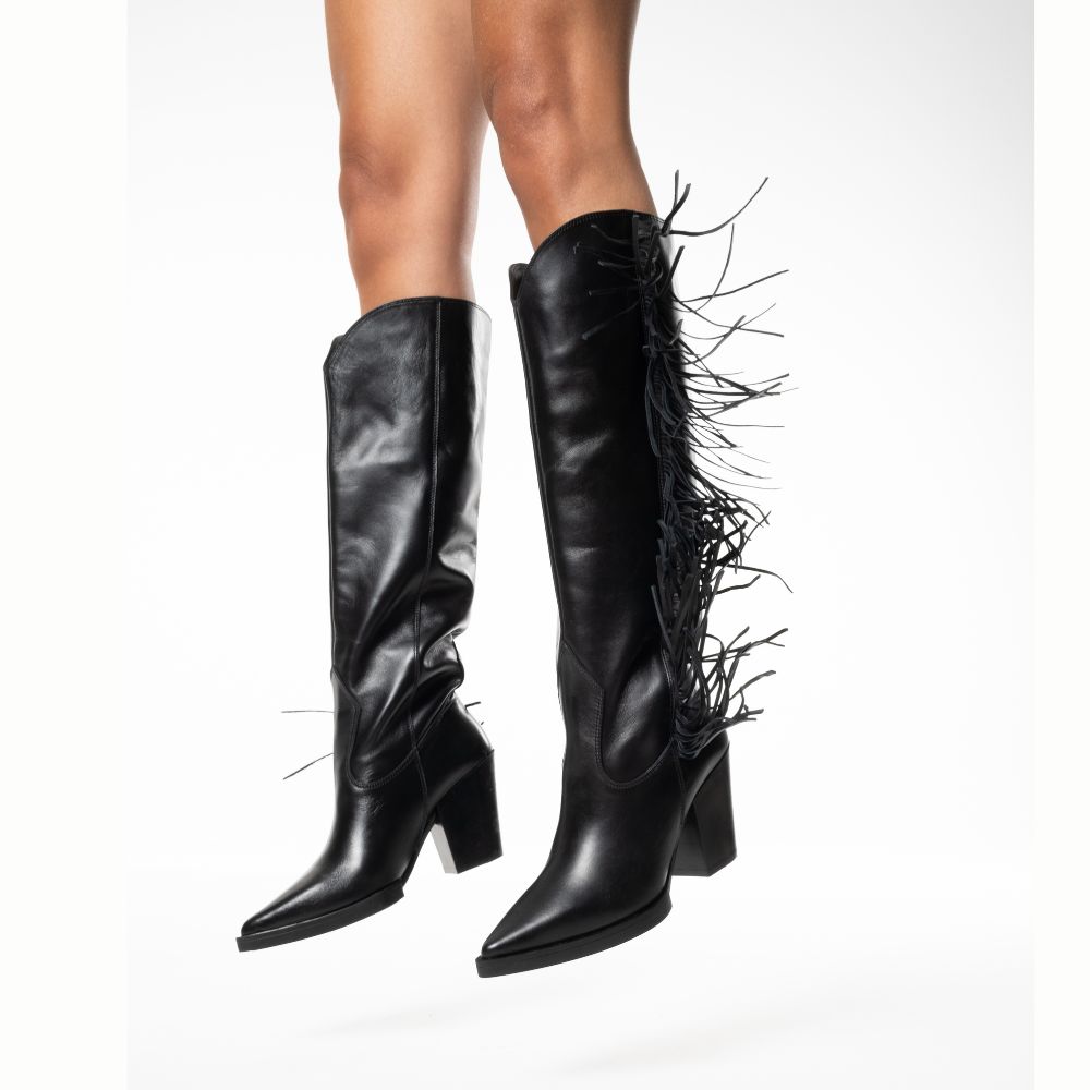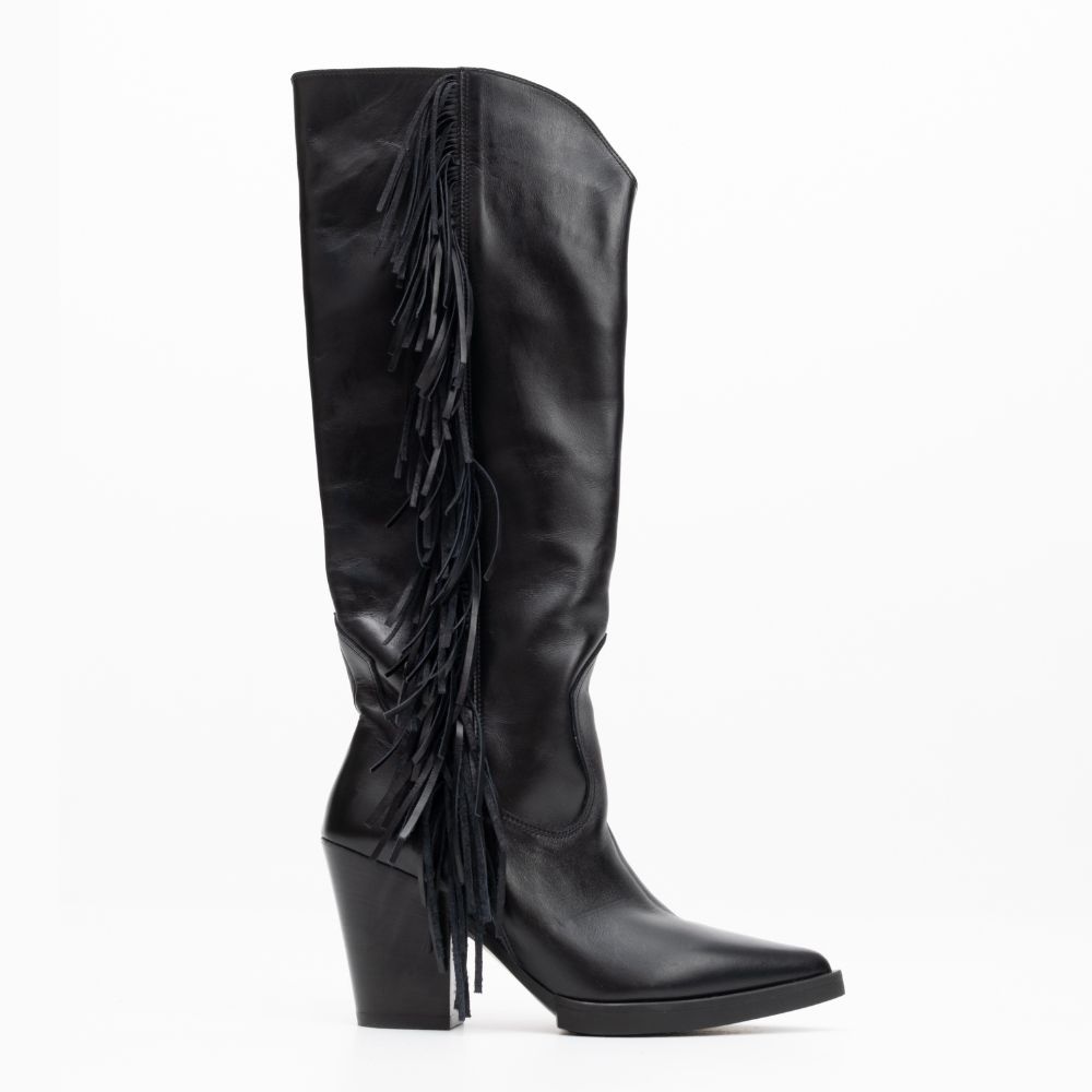 ψηλές μπότες μαύρο δέρμα, Western/Cowboy με κρόσια