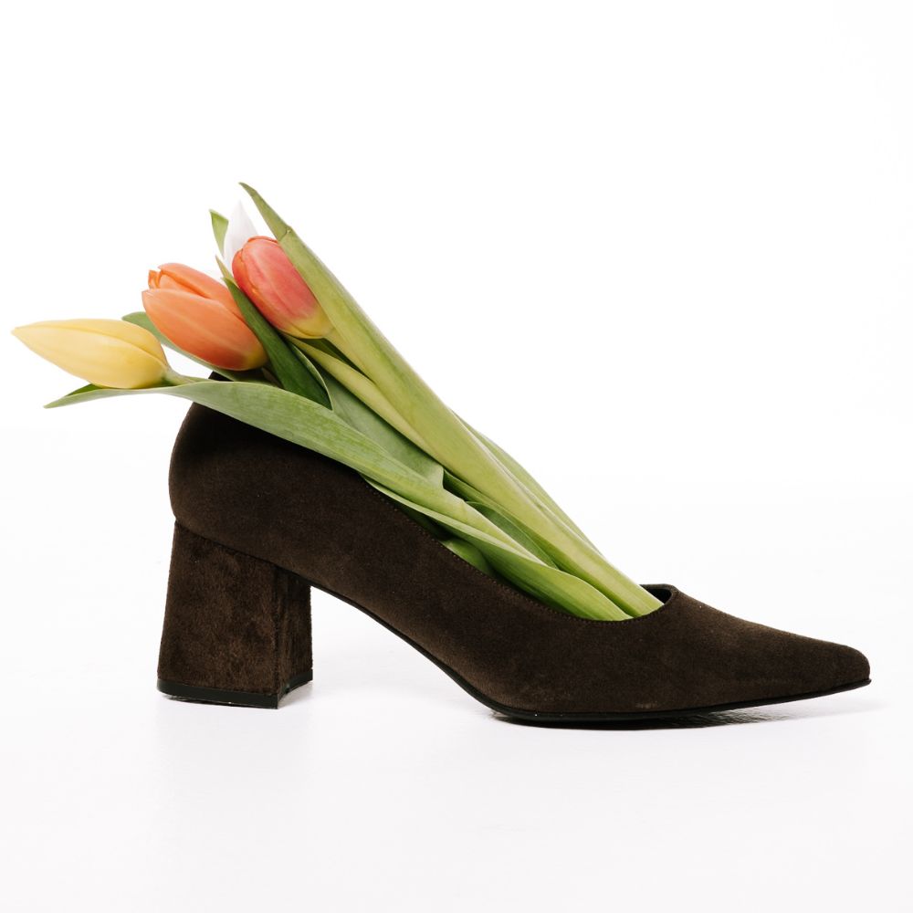 γόβες καφέ καστόρι με μεσαίο τακούνι