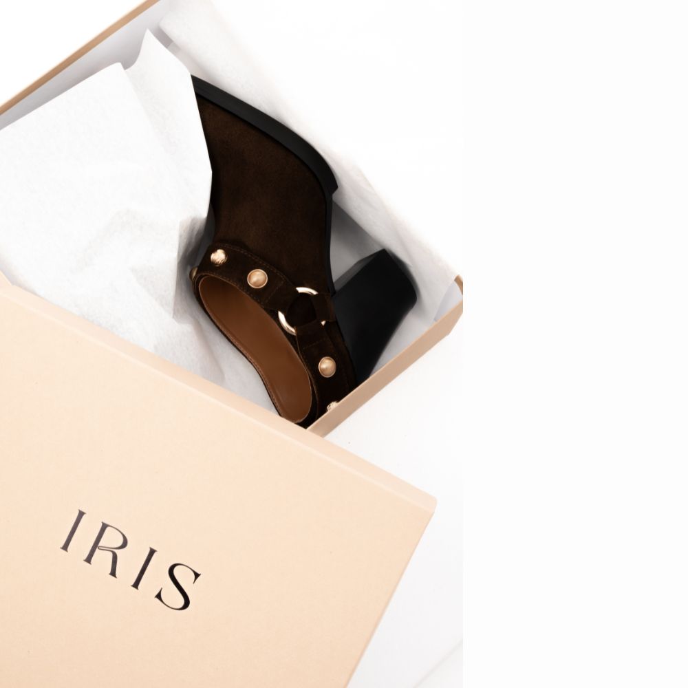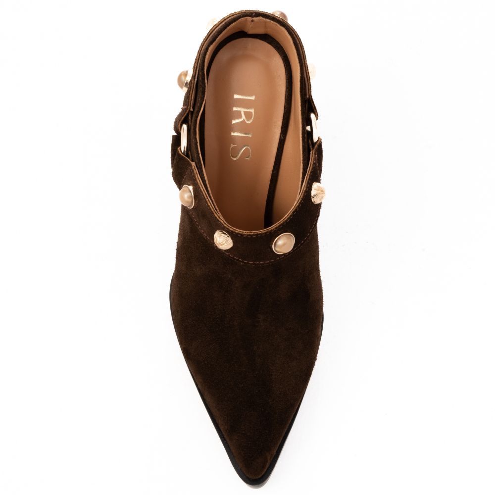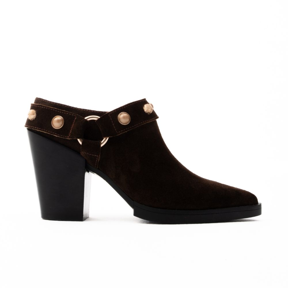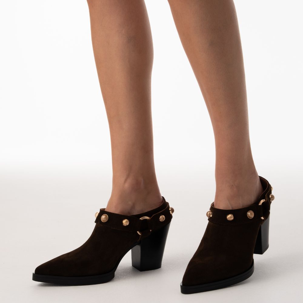 Western mules καφέ καστόρι με διακοσμητικά και ψηλό τακούνι