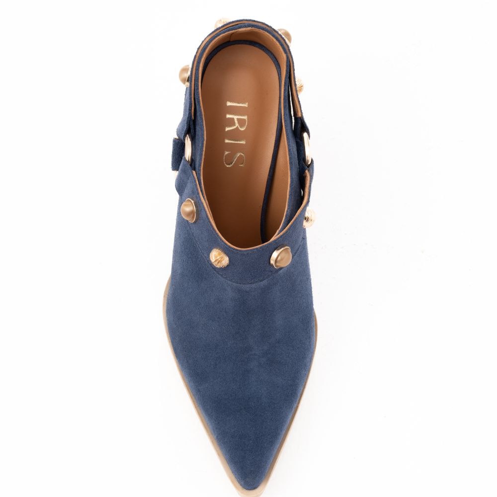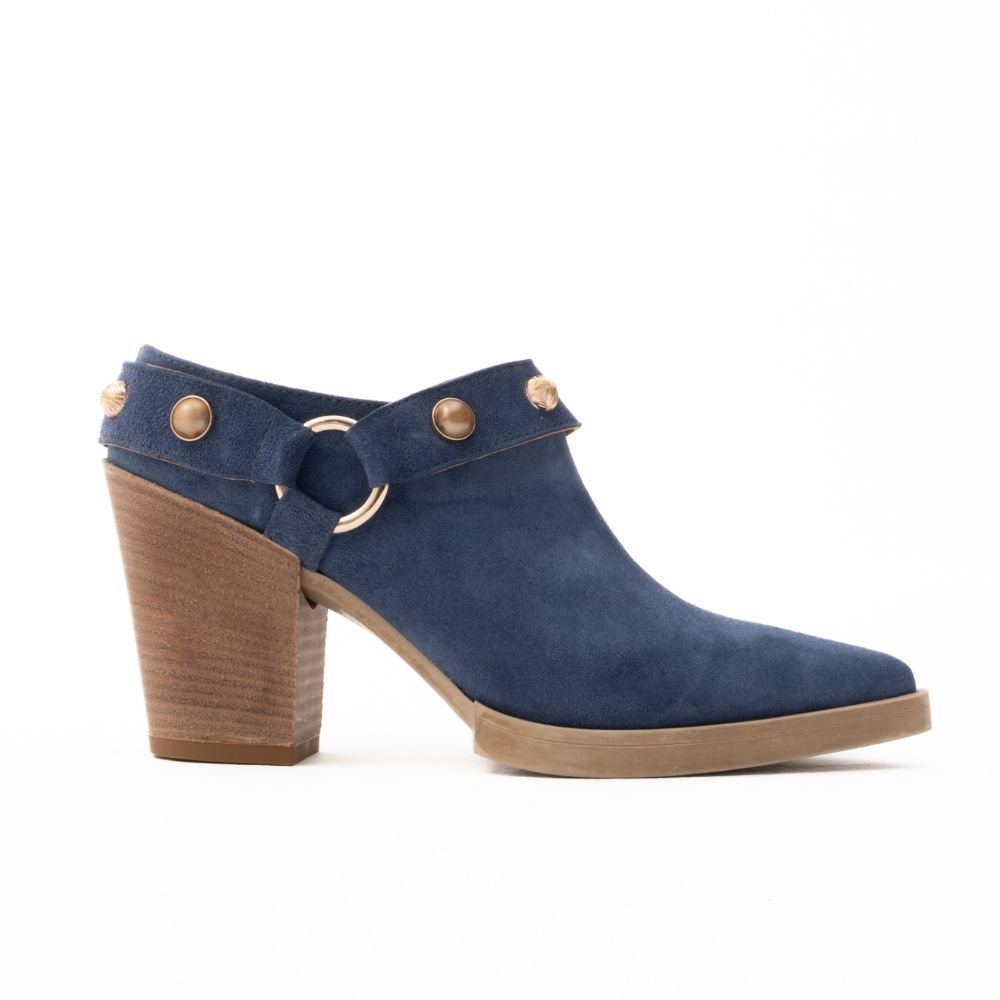 Western mules μπλε καστόρι με διακοσμητικά και ψηλό τακούνι
