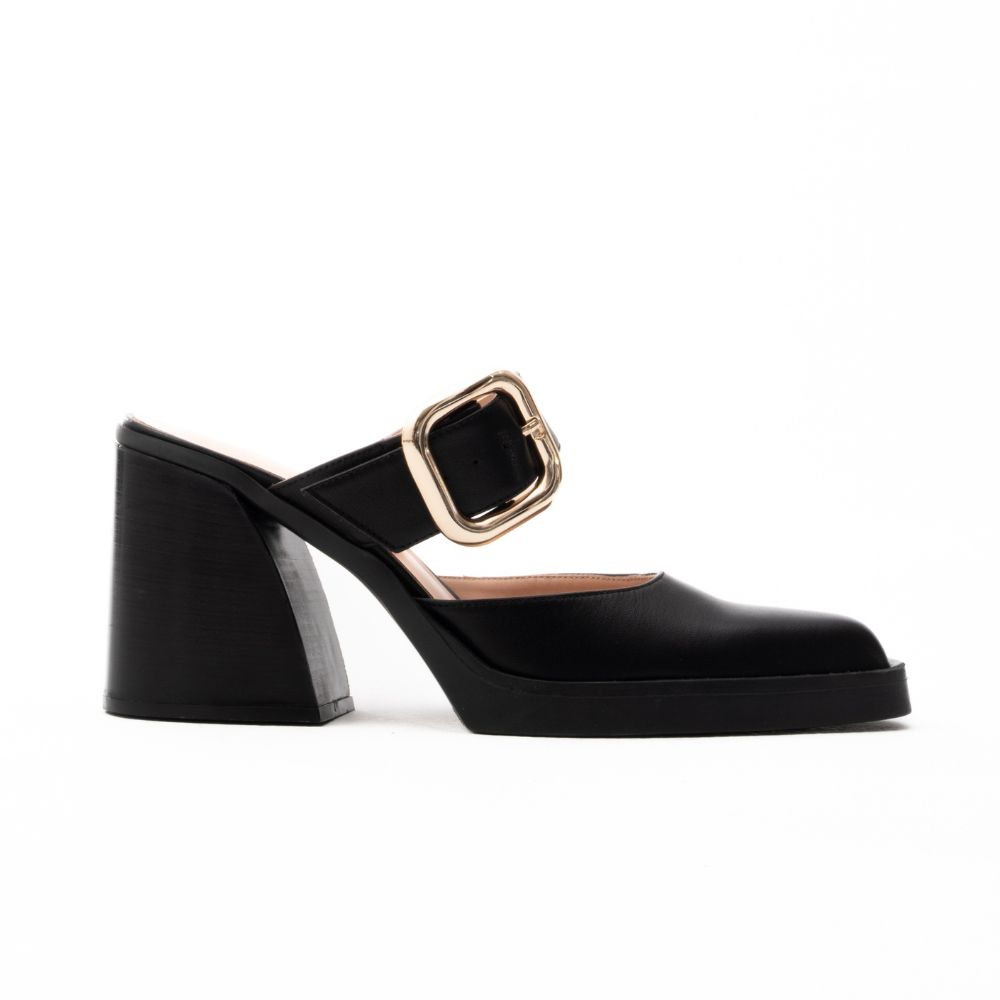 Mules δερμάτινα western style, με μπαρέτα και αγκράφα. Μαλακός πάτος, χοντρό σταθερό τακούνι κι ελαστική σόλα για άνεση στο περπάτημα. Ένα ιδιαίτερο σχέδιο για όλες τις εποχές και δυναμικές casual εμφανίσεις.