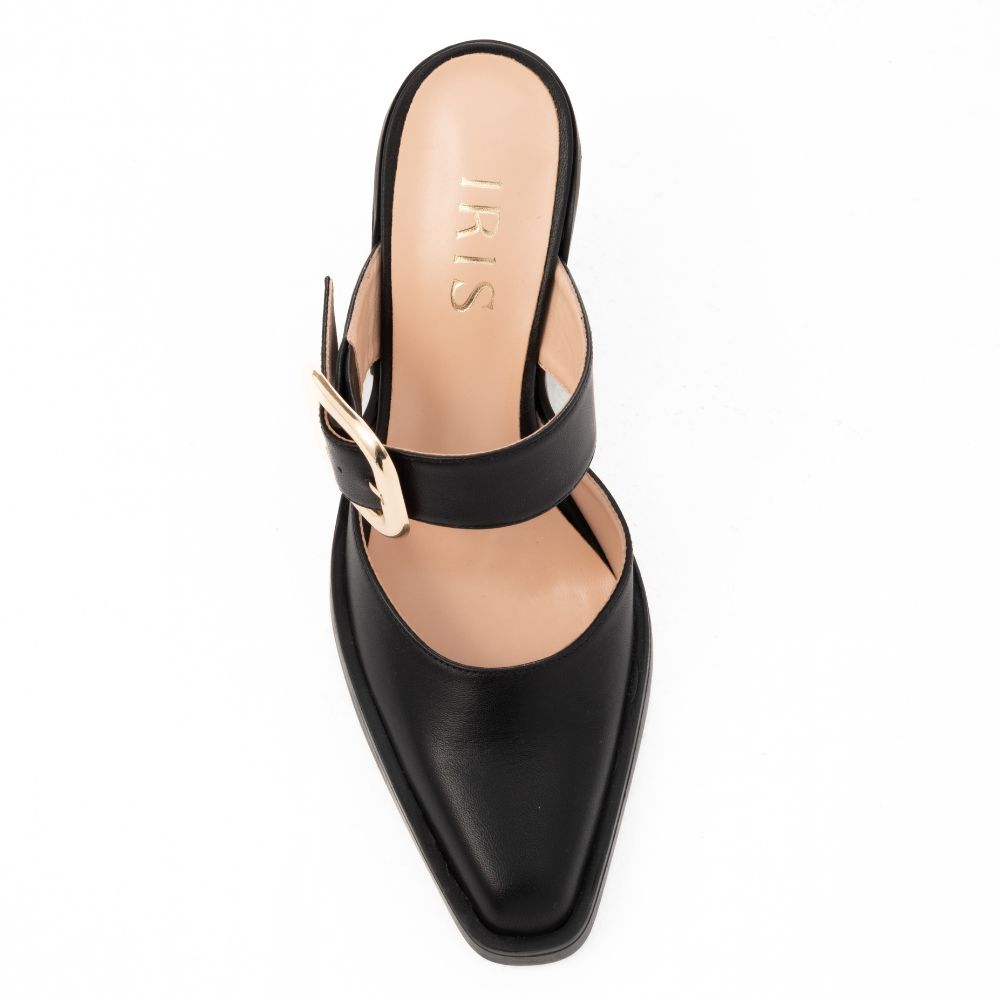 Western mules μαύρο δέρμα με διακοσμημένη μπαρέτα