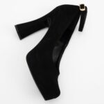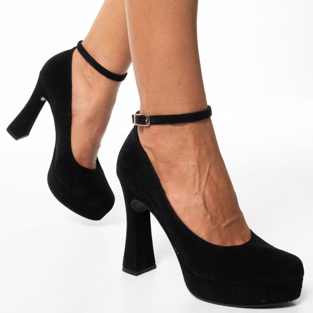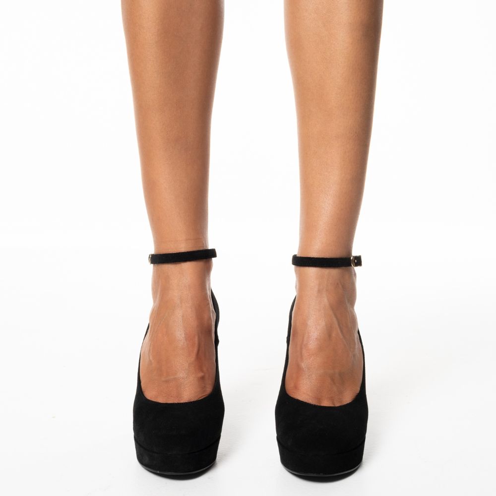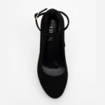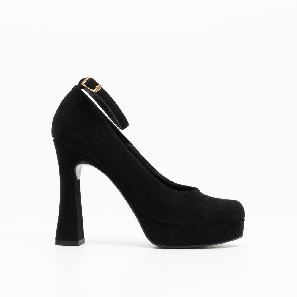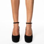 γόβες μαύρο καστόρι με φιάπα και ψηλό χοντρό τακούνι
