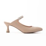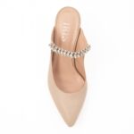 γόβες mules μπεζ δερμάτινες με στρας μυτερές