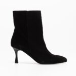 μαύρα μποτάκια ημίψηλα καστόρι δέρμα με ψηλό τακούνι